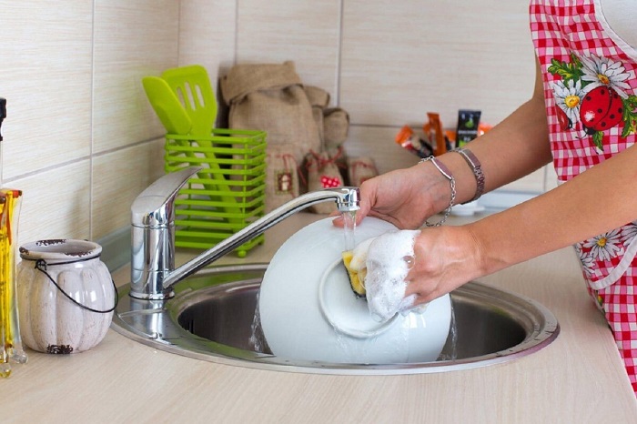 После ополаскивания посуды, бытовая химия все равно остается на стенках