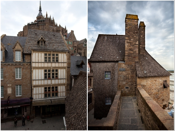 Понадобилось несколько веков, чтобы аббатство-крепость Мон-Сен-Мишель обрело традиционные очертания. У подножия горы была построена деревня, где жили и трудились крестьяне, ремесленники и торговцы, которые должны были кормить тех, кому по статусу положено было находиться на более высокой ступени общества – это рыцари и герцоги («те, кто воюет»). Ну а на самой вершине, находилось как раз аббатство, где обитают «те, кто молится» — священнослужители и монахи.