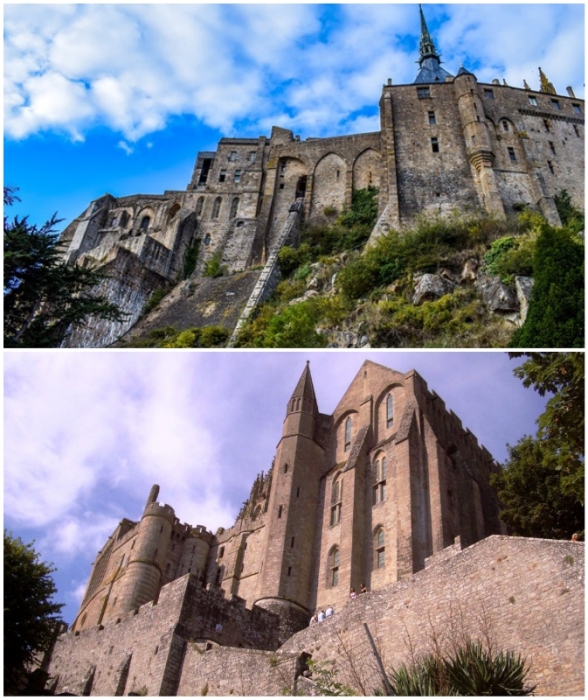 Монументальные очертания сооружений, которым уже более 1 тысячи лет (аббатство Мон-Сен-Мишель, Франция).