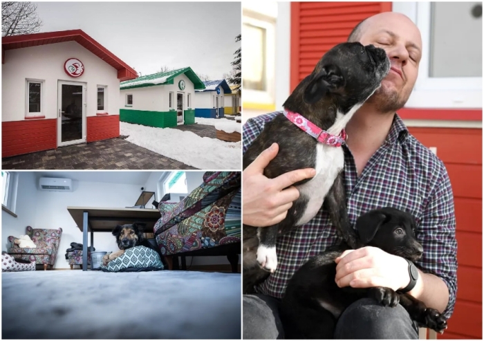 Польский ветеринарный врач настолько проникся тяжелой судьбой брошенных собак, что решил построить комфортабельные домики для четырехлапых друзей. Энтузиасту и волонтерам понадобилось 2 года, чтобы в чистом поле появилась небольшая деревенька с красочными комфортабельными домиками, в которых имеются удобные диванчики, теплый пол и даже кондиционеры с интернетом, а люди в любой момент могут прийти на помощь.
