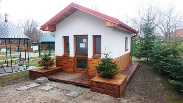 Прототип домика был построен на территории Центра реабилитации животных «Ада» еще 2 года назад. | Фото: filharmonia-sudecka.pl. Каждый домик подключен к интернету, чтобы вести видеонаблюдение за питомцами. Не исключается и непосредственное участие людей. Профессиональные «воспитатели» и волонтеры круглосуточно дежурят в деревне, стараясь окружить вниманием и теплом питомцев, терпеливо и с любовью учат их жить в Деревне и приучают к тому, что рука человека не хочет ударить их, а взять с собой на прогулку или погладить.