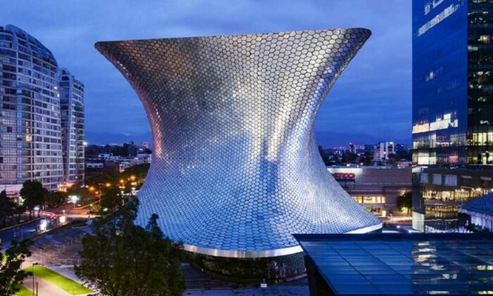 Главной его изюминкой стали футуристические формы, которые разработал и воплотил в жизнь зять миллиардера – амбициозный архитектор Фернандо Ромеро. Ему удалось спроектировать здание своеобразной формы, покрытое 16 тыс. шестиугольных элементов, созданных из полированной стали с зеркальным эффектом, что сделало его похожим на странное инопланетное существо гигантских размеров, которое постоянно меняет цвет кожи благодаря игре света и тени.