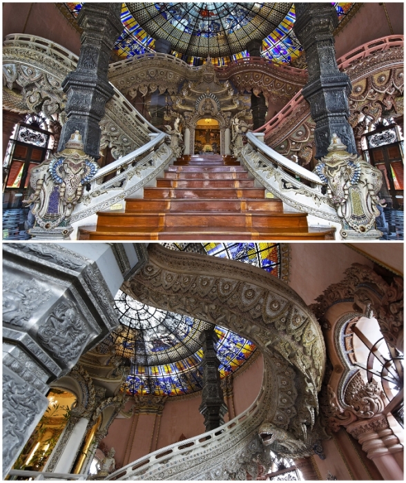 Панорамное здание, щедро украшенное барельефами, лепниной, резными элементами и колоннами, увенчанное 250-тонной бронзовой статуей слона-мутанта, настолько завораживающее зрелище, что посетители не сразу вспоминают, за чем явились к музею. Хотя сказочный интерьер и экспозиция также может удивить роскошным убранством, витражами, лепниной, артефактами, китайскими вазами времен династий Мин и Цин, предметами искусства из Европы, реликвиями и статуями Будды.