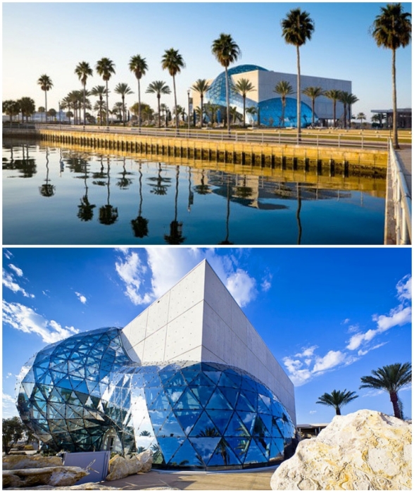 На берегу залива Тампа Бэй курортного города в Сент-Питерсберге, что во Флориде, в 2011 г. появилось новое здание музея Сальвадора Дали, являющегося крупнейшим музеем за пределами Испании, где собраны работы всемирно известного художника. Новый дизайн, предложенный талантливыми архитекторами компании HOK Florida, оказался под стать креативности самого Сальвадора Дали, восхищая посетителей сюрреалистичными формами и неповторимым шармом. Особенно впечатляет пристройка к музею в форме гигантского пузыря, состоящего из 1062 треугольников, сделанных из стекла.