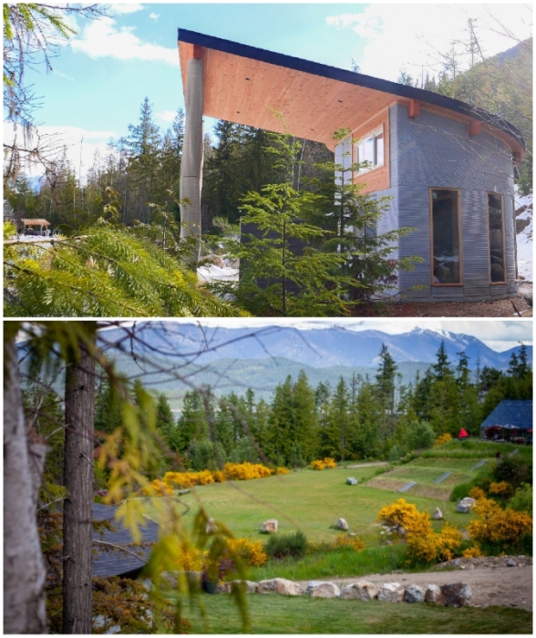 Экспериментальный домик размещен на живописных склонах природной зоны в Британской Колумбии (Fibonacci House, Канада).