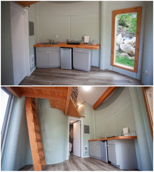 Стены и перегородки печатал принтер, а вот крышу, окна, потолки и полы устанавливали по старинке (Fibonacci House, Канада).