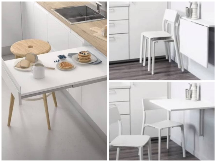 Складные, откидные и выдвигающиеся их кухонного гарнитура столы - наверное, самое умное решение в данной подборке, если кухня очень маленькая.