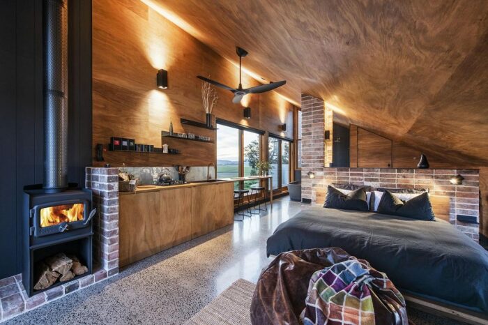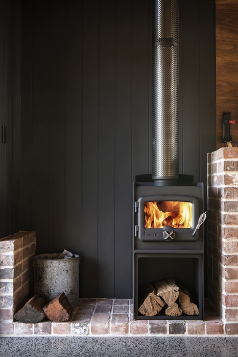 Дровяная печь обеспечит не просто теплом, но и создаст атмосферу домашнего уюта (Gawthornes Hut, Австралия). | Фото: callanderconstructions.com.au.
