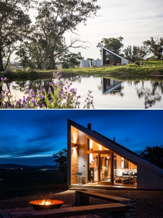 За стенами жестяного сарая прячется идеальное место для отдыха вдали от цивилизации (Gawthornes Hut, Австралия). Клиновидная хижина, расположенная в Маджи (плодородной долине реки Кадджегонг, Австралия), у любого путника вызовет лишь ассоциацию с полуразрушенным ангаром для сена или недостроенным сараем, но никак не с благоустроенными апартаментами, сдаваемыми для отдыхающих. Но утилитарный экстерьер Gawthorne's Hut («Хижины Готорна»), разработанный специалистами студии Cameron Anderson Architects', только вводит в заблуждение.