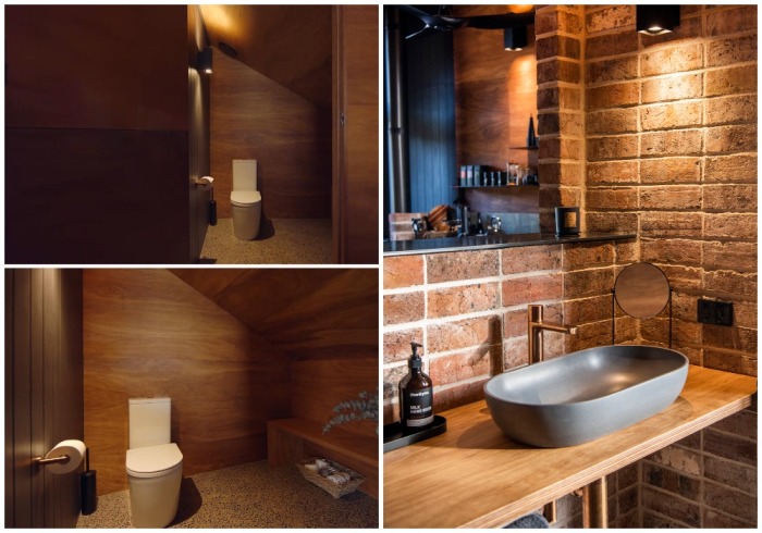 При оформлении интерьера дизайнеры старались использовать лишь натуральное дерево, что сделало его похожим на деревенскую хижину с приятными на ощупь поверхностями, которые вызывают ощущение тепла и покоя.