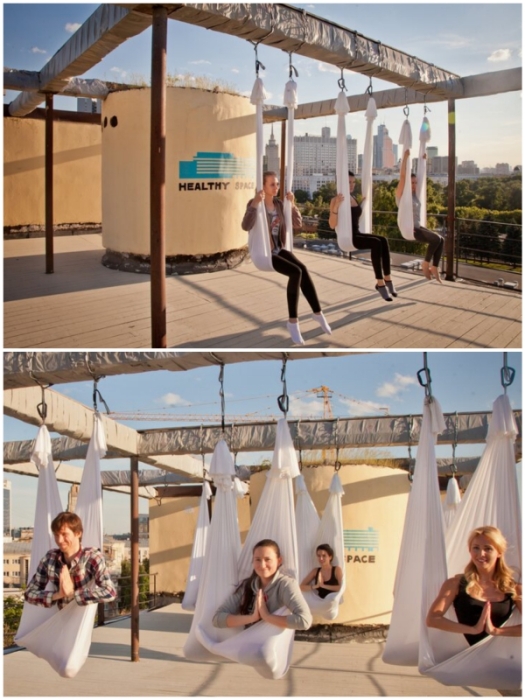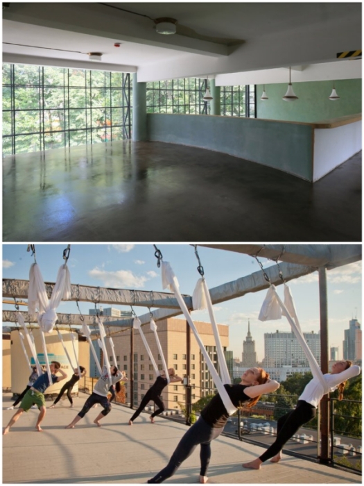 Уже в наше время на крыше коммунального корпуса все-таки организовали спортзал под открытым небом («Дом Наркомфина»).