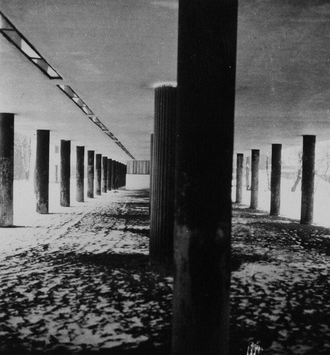 Вместо первого этажа были установлены опоры, призванные сделать здание более воздушным и светлым («Дом Наркомфина»). | Фото: thecharnelhouse.org.