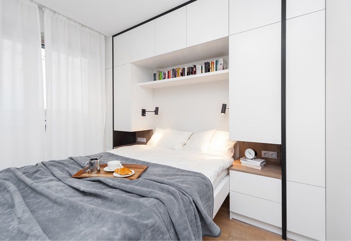 Вокруг кровати отлично будут смотреться встроенные шкафы. / Фото: pinterest.ru