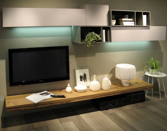 Шкафчики над телевизором решат некоторые вопросы хранения. / Фото: mebel-v-nsk.ru