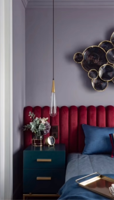 Но можно сделать изголовье и акцентом вашей спальни и добавить таким образом броский новый цвет.