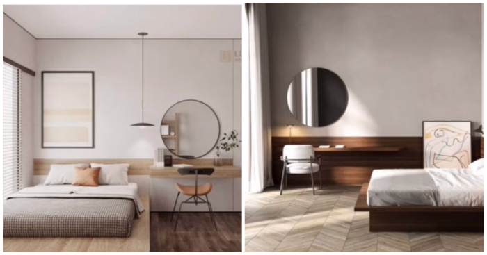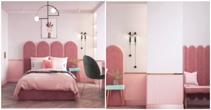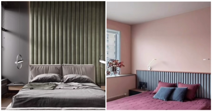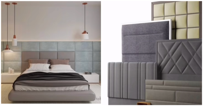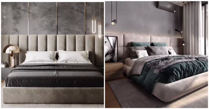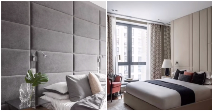 Идеальный цвет для панелей за изголовьем – серый, пепел розы или бежевый.