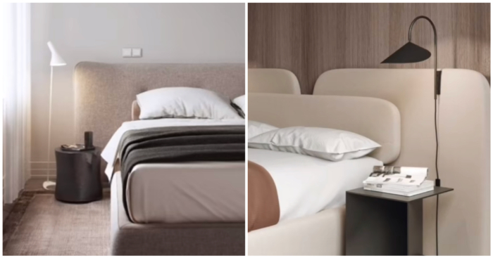 Очень здорово, когда такие панели выступают от кровати по бокам.