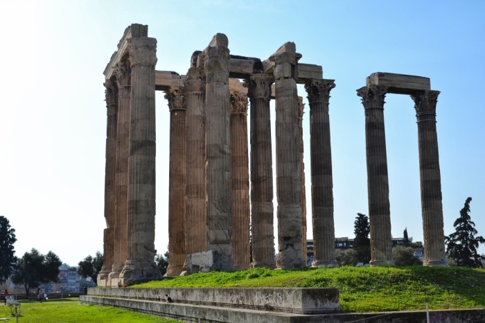Античный Храм Зевса Олимпийского или Олимпейон, известен своими колоннами, взметнувшимися ввысь больше чем на 17 метров (высота 6-этажного дома). Его многовековая история переполнена неурядицами во время строительства и множеством трагических событий. Интересный факт от Novate.ru: Олимпейон начал строиться еще в VI веке до нашей эры, но политические трудности и войны затянули этот процесс аж до II столетия н. э. Только при римском императоре Адриане (76-138 гг. н. э.) проект был окончательно завершен. Учитывая огромный промежуток времени в его проектировании и возведении участвовало множество архитекторов, которые привносили, что-то свое. Хотя на первоначальном плане был изображен храм в дорическом стиле и выполнен он был из известняка.