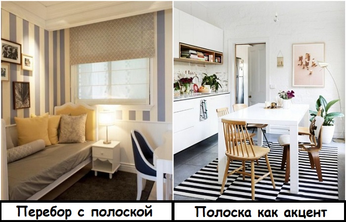 Принт в полоску лучше использовать не в отделке, а в декоре
