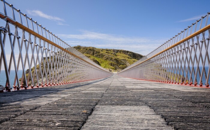 57-метровый консольный мост, ведущий к самому романтичному средневековому замку Тинтагель, разработанный бельгийской компанией Ney & Partners и партнерами William Matthews Associates, стал самой уникальной пешеходной переправой Корнуолла. Она понадобилась для того, чтобы облегчить туристам путь к полуразрушенному замку XIII века.