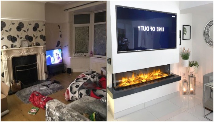 Вместо устаревшего камина появилась современная модель, да и телевизор расположен на самом видном месте (Ливерпуль, Великобритания).
