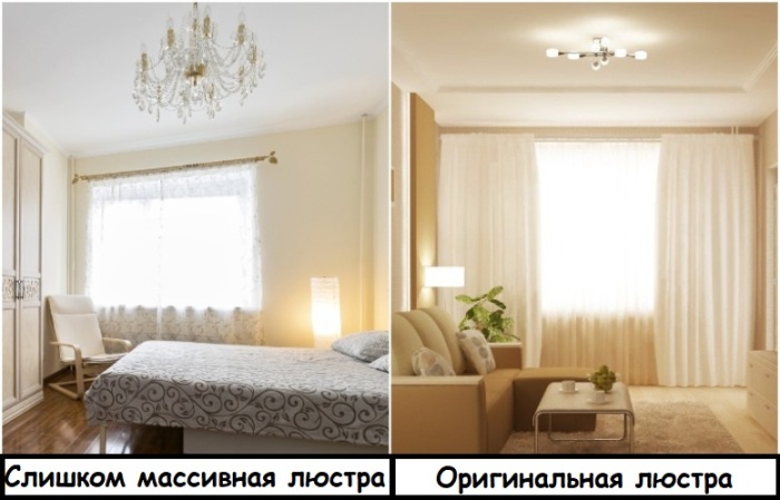Массивные люстры лучше заменить на варианты с оригинальным дизайном