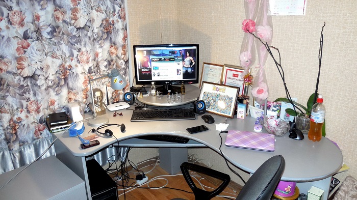 На компьютерном столе много вещей. / Фото: sunhome.ru