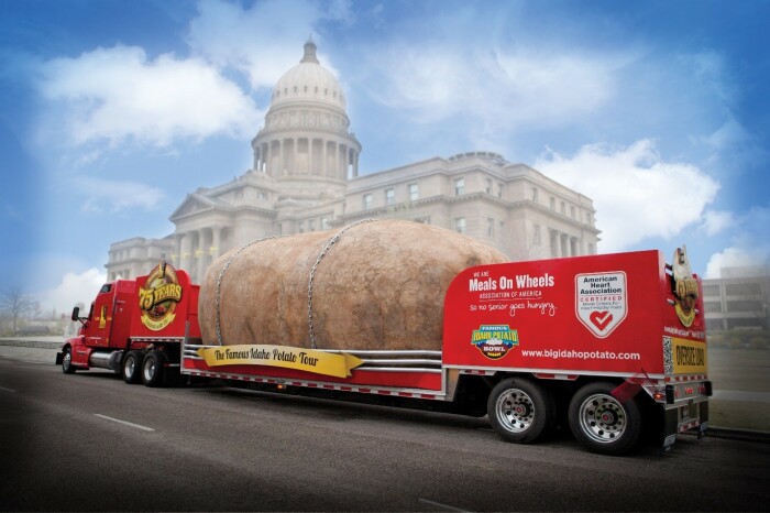 По сведениям редакции Novate.ru, все началось более 10 лет назад, именно в тот период Айдахо стал лидером по выращиванию картофеля среди всех штатов. Окрыленные достижением власти решили сделать картофель символом региона. Совместно с Ассоциацией Idaho Potato Commission была организована оригинальная рекламная акция. Местные мастера сделали масштабный муляж картофелины, длина которого достигала 8,5 метров, а диаметр в среднем 3,55 м. 6-тонный аппетитный овощ водрузили на грузовой автомобиль и катали его по всей стране, привлекая к себе всеобщее внимание. Рекламная кампания длилась почти 8 лет, но пришло время поменять тактику, и путешествие бутафорского корнеплода прекратили.