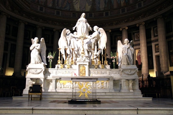 Скульптурная композиция, посвященная Марии Магдалине у главного алтаря, созданного скульптором Карло Марокетти (1835-1857 гг.). | Фото: eglise-lamadeleine.com.