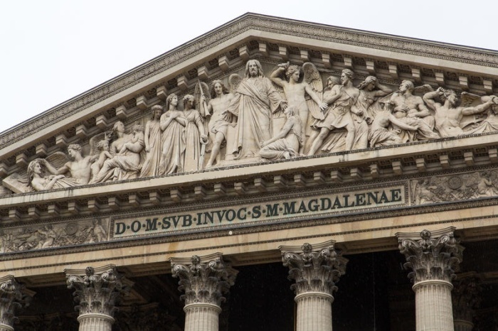Фронтон la Madeleine со скульптурой «Страшный суд» Генри Лемера (1833 г.). | Фото: cosmovisions.com.