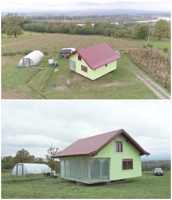 Необычный дом появился в пригороде Србаца (Босния) благодаря новатору-самоучке, всеми силами стремившегося угодить своей жене, которая мечтала о более разнообразном виде из их семейного дома. Боснийскому пенсионеру настолько надоели постоянные жалобы, что он решил построить вращающийся дом.