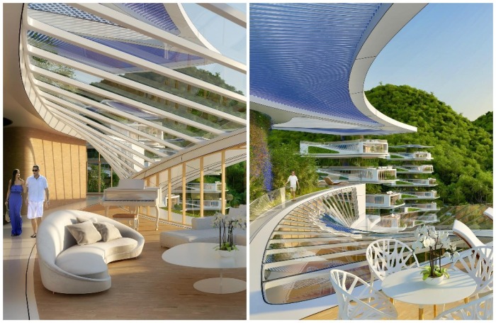 Прогулочные зоны комплекса обеспечат и прекрасными видами, и чистейшим воздухом (концепт эко-курорта Nautilus). | Фото: mymodernmet.com.