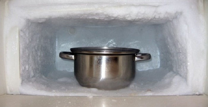 Кастрюлю с соленой водой нужно поставить в морозилку. / Фото: tokzamer.ru