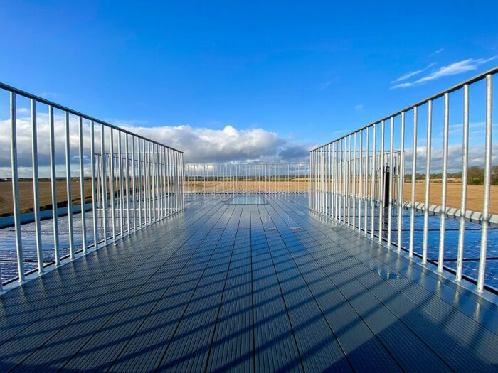 Крыша водонапорной башни превратилась в террасу и место, где установлены водно-энергетические системы (Castle Acre, Великобритания). | Фото: architectural-review.com.
