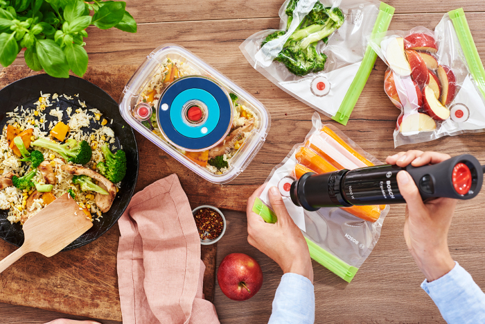 Еще одним помощником в создании заготовок станет вакуумная технология (если, конечно, ваш прибор оснащен ей). За счет откачки воздуха из контейнера или специального зип-пакета продукты останутся свежими в два раза дольше. Таким образом, мы можем создать множество полуфабрикатов из овощей и мяса, навертеть котлеток или приготовить пюре. Можно измельчить орехи для добавления в утренние каши или йогурт или сделать стружку из сухофруктов для перекуса в середине дня.