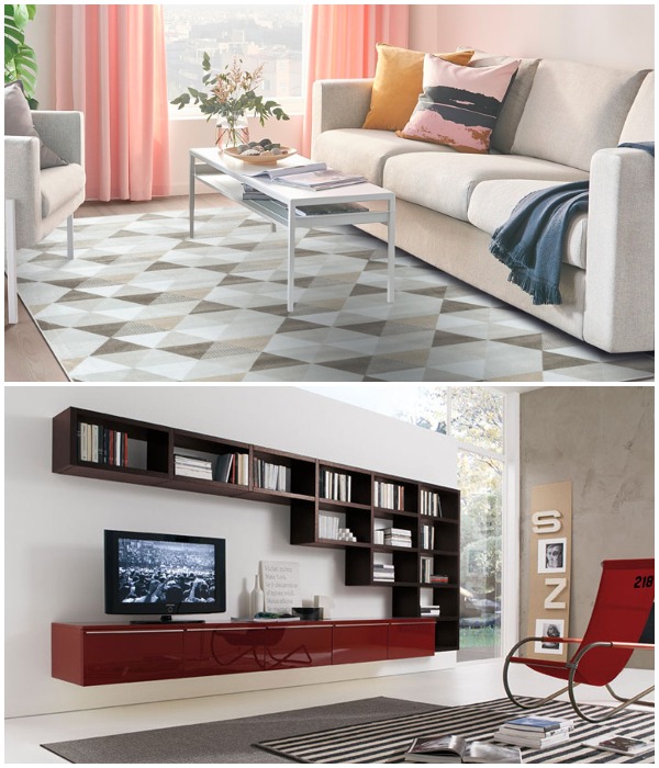 Всем хочется иметь мягкий и пушистый ковер под ногами, но для гостиной такой вариант не всегда уместен. Мало того, что ухаживать за ним сложно, так еще и они довольно дорогие. Для этой зоны лучше выбирать вариант циновки, рогожки или любую другую модель, имеющую ярко выраженную плетеную или вязаную структуру. При этом нужно помнить, что ни в коем случае не надо заполнять все напольное пространство ковром. Поскольку нет смысла укладывать ковер под мебель, а также стоит понимать, что цена изделия напрямую зависит от его размера.