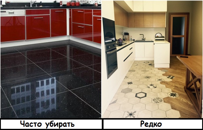 На темной плитке сильнее заметны пыль и пятна