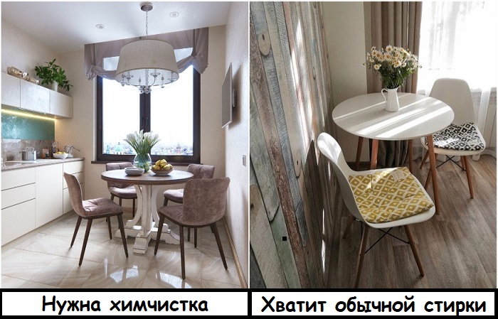 Вместо тканевых стульев выбирайте пластиковые с мягкими подушками