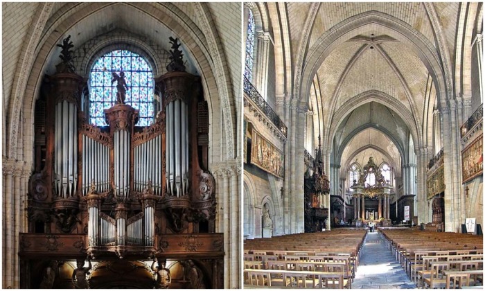 Впечатляющий интерьер старинной святыни города Анже (Angers Cathedral, Франция).