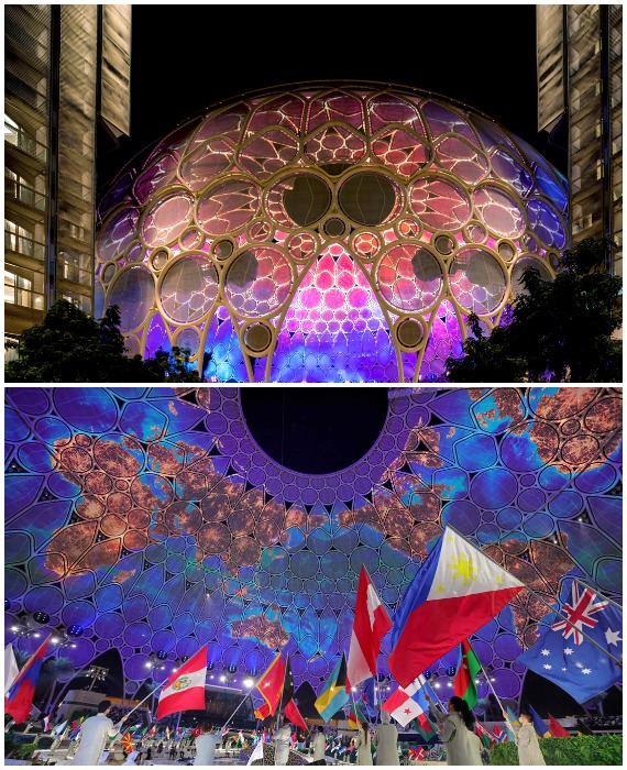 В Дубае, наконец-то, открылась Всемирная выставка Expo-2020, которая была перенесена из-за нагрянувшей пандемии. К этому событию готовились заблаговременно, и эта подготовка состояла в строительстве впечатляющих павильонов от 192 стран, а также нескольких тематических зон. Как и следовало ожидать, центральным архитектурным объектом стало масштабное сооружение принимающей страны.