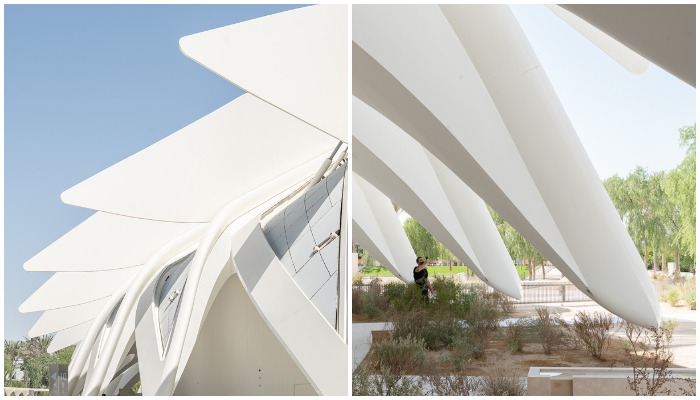 Впечатляющая крыша в виде крыльев может менять форму в зависимости от движения солнца (Дубай, ОАЭ). | Фото: globeinfinite.com.