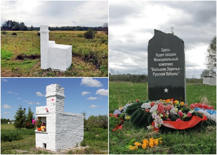 Русские печи в чистом поле стали мемориальным комплексом, посвященным павшим жителям деревни Большое Заречье (Волосовский район). | Фото: twitter.com.