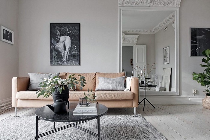 Бежевый диван выглядит очень уместно. / Фото: sdelat-dom.ru