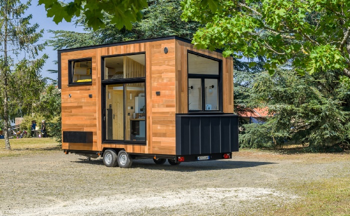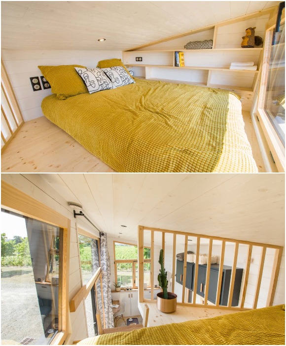 Благодаря большой площади остекления, внутри домика будет не так тесно и всегда светло (модель The ia Orana). | Фото: tinyhouse-baluchon.fr.