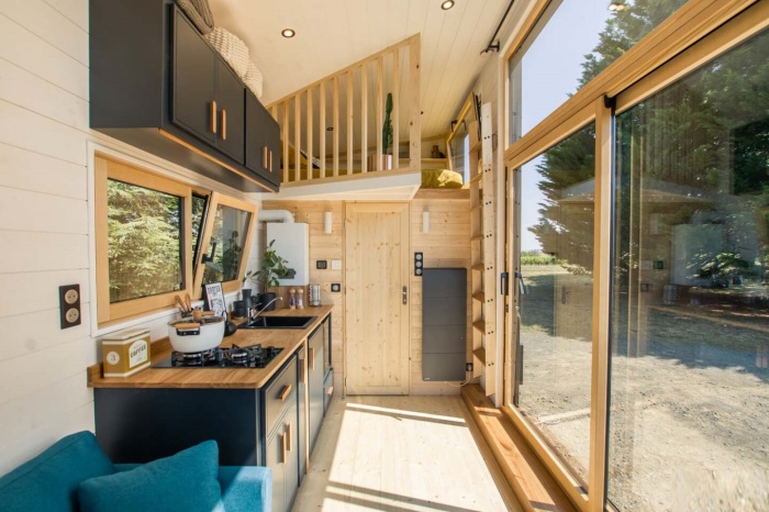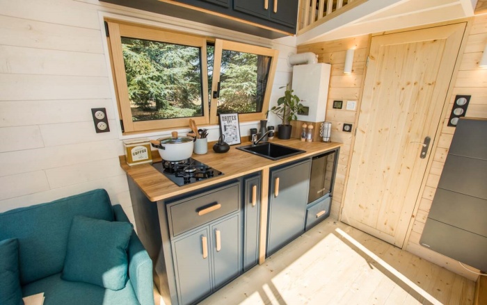 Благоустроенная кухня порадует обстановкой и функционалом (модель The ia Orana). | Фото: tinyhouse-baluchon.fr.