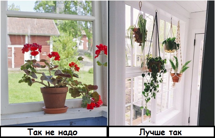 Если в вашей квартире ширина подоконников не превышает 15 сантиметров, не стоит их использовать для расстановки декора. На них получится разместить только маленькие фигуры и вазы, непропорциональные по отношению к размеру окна. А если традиционно поставить на подоконник комнатные цветы, они окажутся прижатыми листьями к окну.