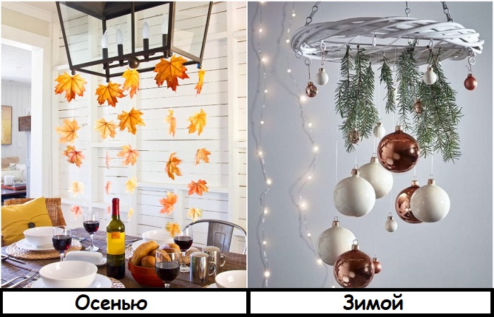 Чтобы интерьер не приедался, дизайнеры советуют прибегать к помощи тематического сезонного декора. Он поможет создать уют в квартире, а также подчеркнуть красоту любого времени года, даже если вы не являетесь его фанатом. Например, летом можно украсить комнату полевыми или садовыми цветами, купить зеленые наволочки на диванные подушки. А в осеннем интерьере гармонично будут смотреться красные, оранжевые, желтые, коричневые оттенки. Дополнить картину можно будет различными деталями, связанными с осенью, например, шишками, букетами из листьев, спилами дерева и пр. Важную роль в сезонном декоре играет и текстиль. Если у вас есть возможность раз в три месяца менять шторы, пледы, ковры, наволочки, обязательно воспользуйтесь ею, чтобы преобразить интерьер.