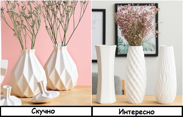 Ошибка 4: Ставить рядом вазы одной формы и цвета
