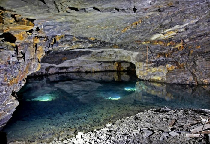 Подземное озеро – главная изюминка сланцевых гротов (Carnglaze Caverns, Великобритания). | Фото: dayoutwiththekids.co.uk.