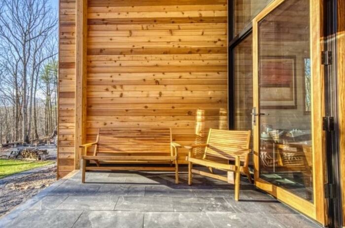 Открытая терраса станет прекрасным местом для отдыха на свежем воздухе (Catskills Cabin, Кэтскилл). | Фото: newatlas.com.